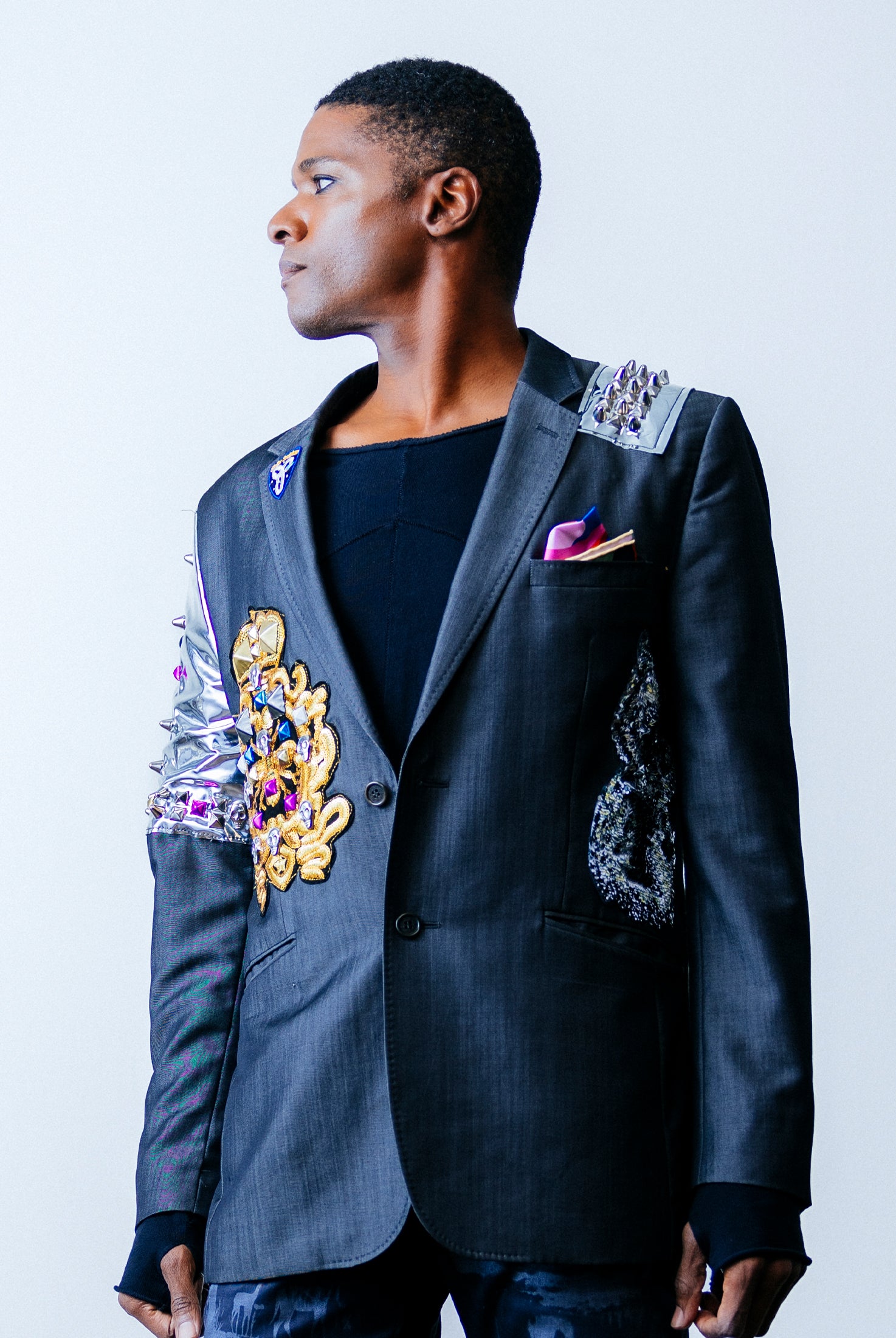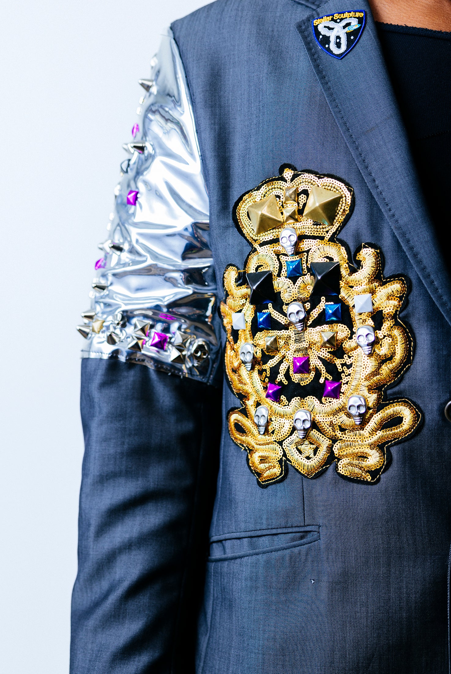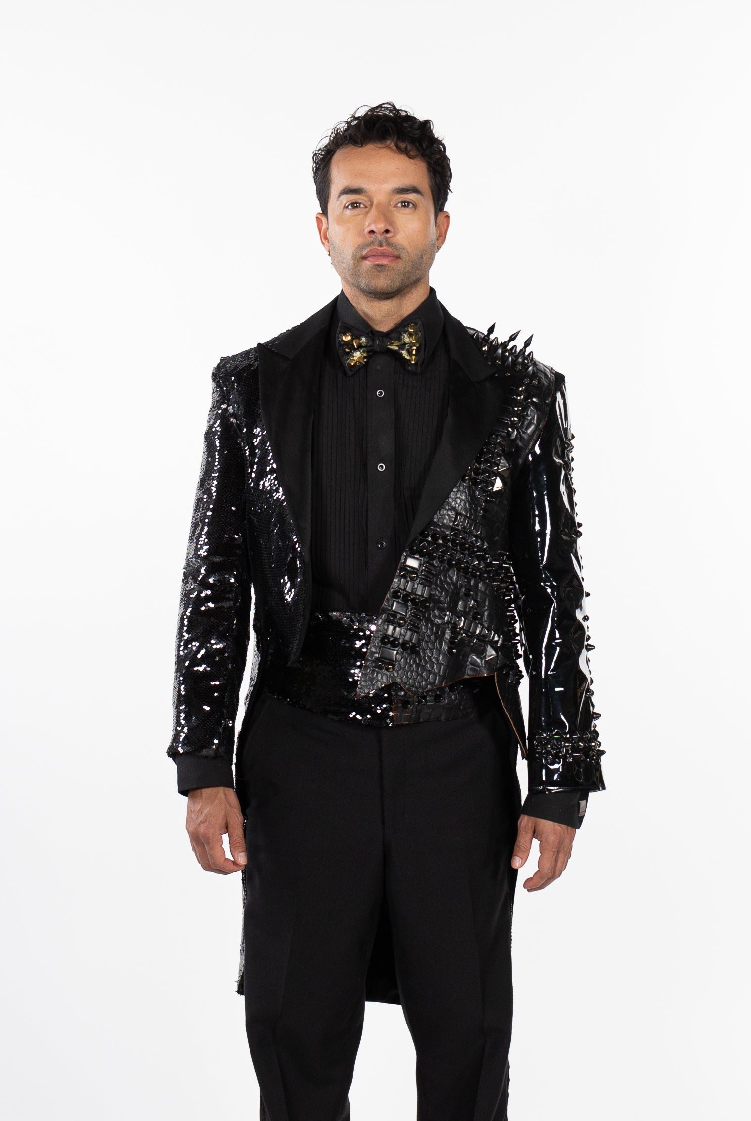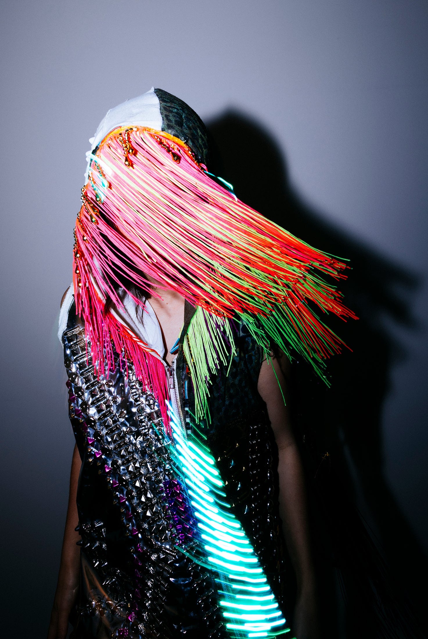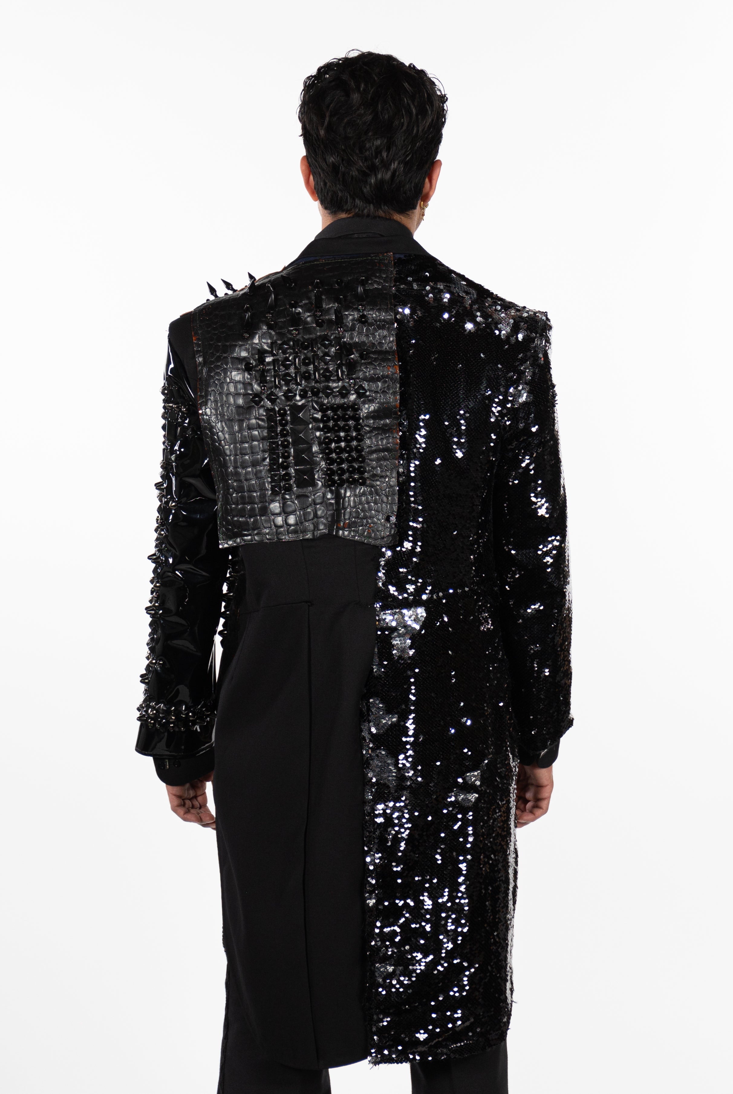 In the Tinsel Arcade, we blend street, formal, and post-modern elements to conjure one-of-a-kind garments by hand. Each is meticulously tailored to be equally dramatic and wearable. With your input, your bespoke garment will reflect you, push you, extend you, and complete you. If more is never enough, you can add LED and reflective overlays with stealth and nonstop modes.