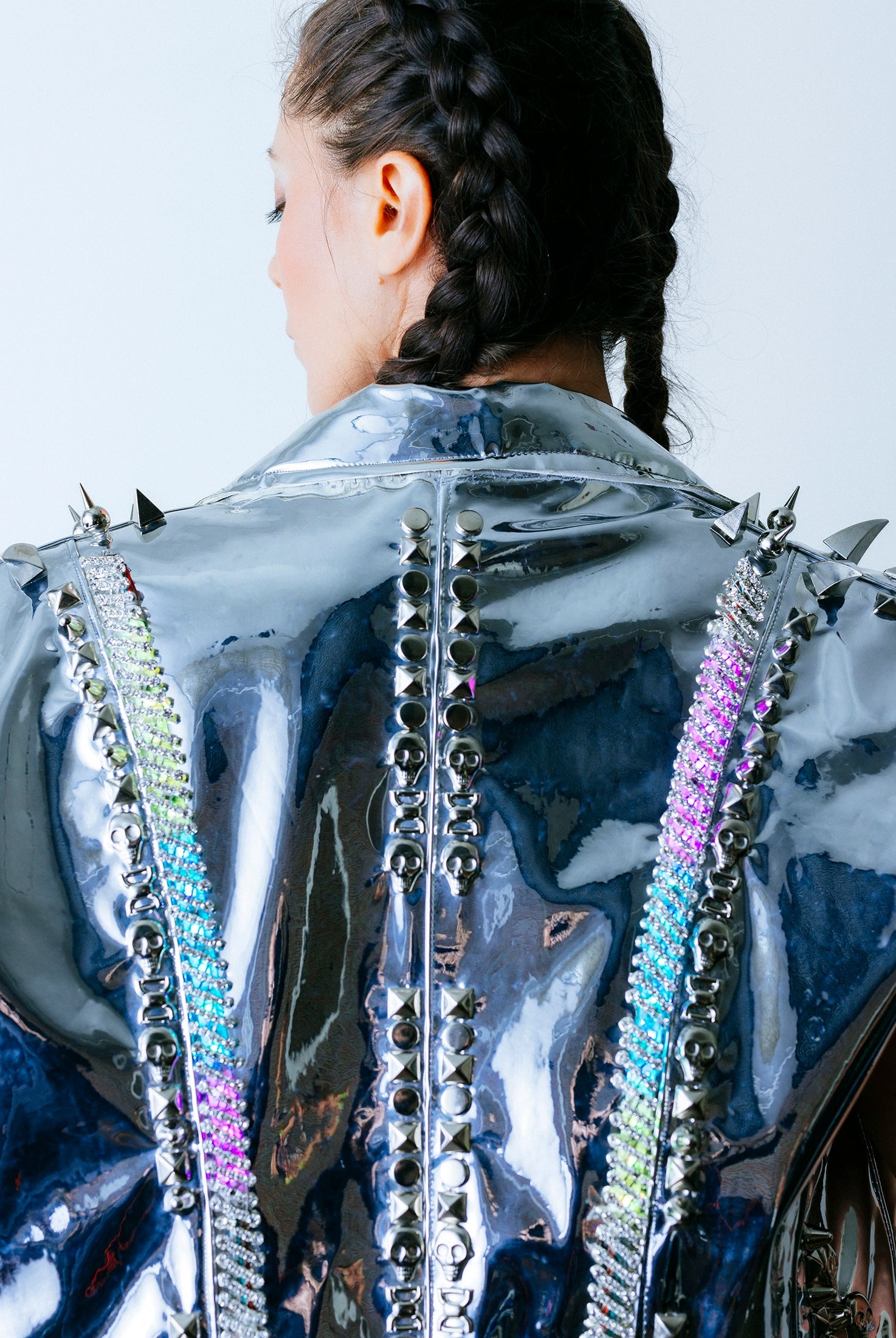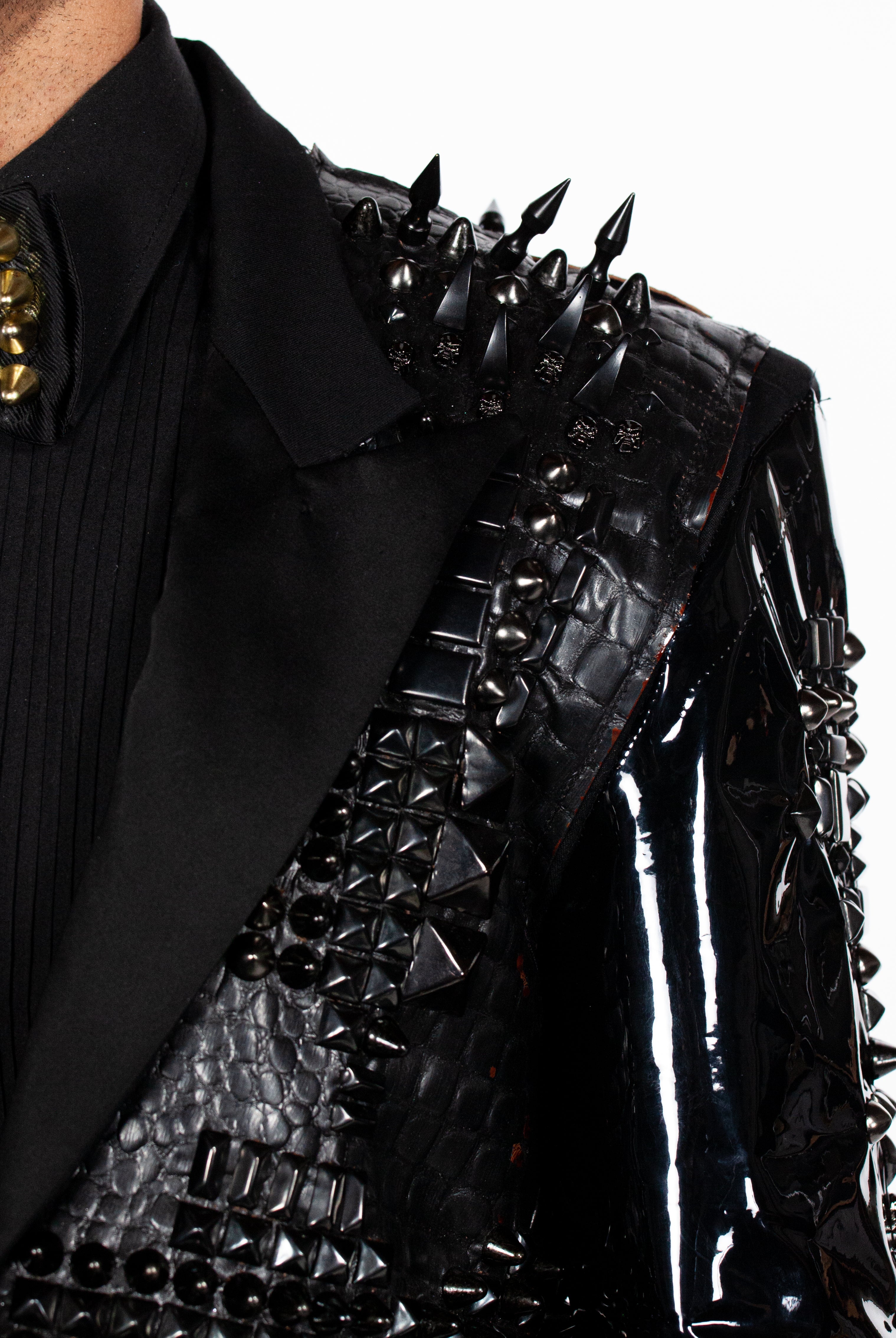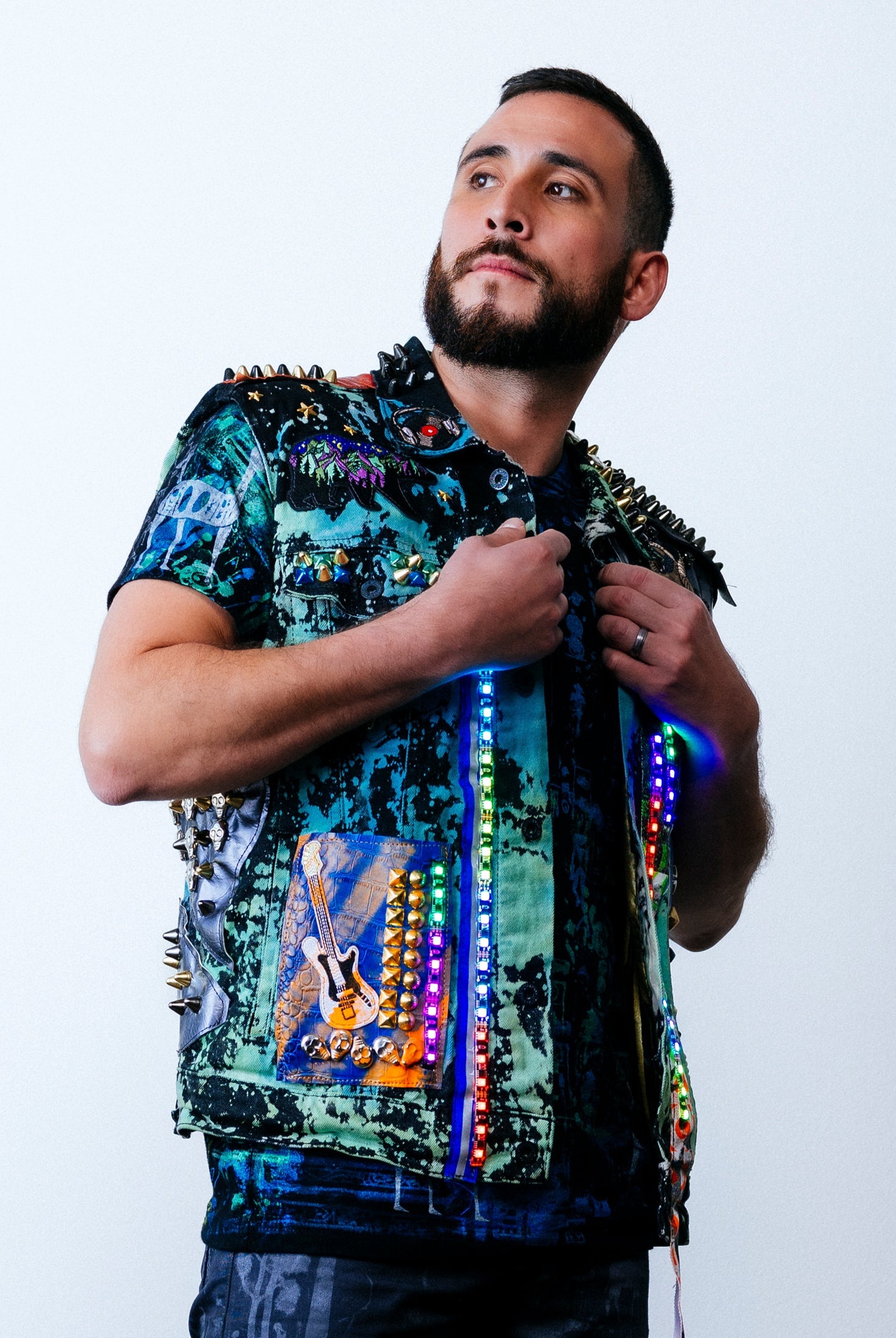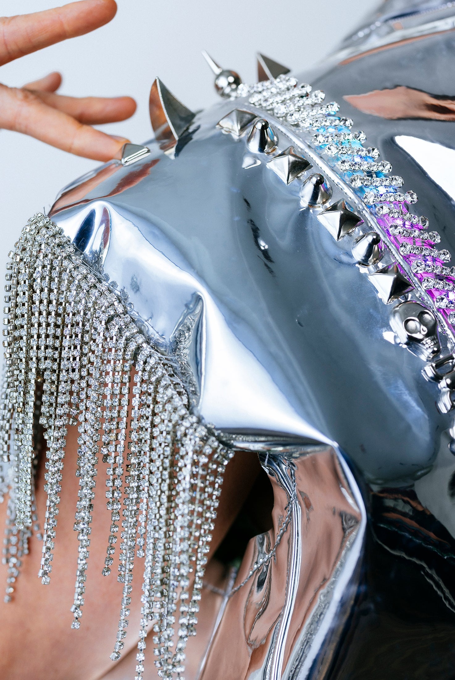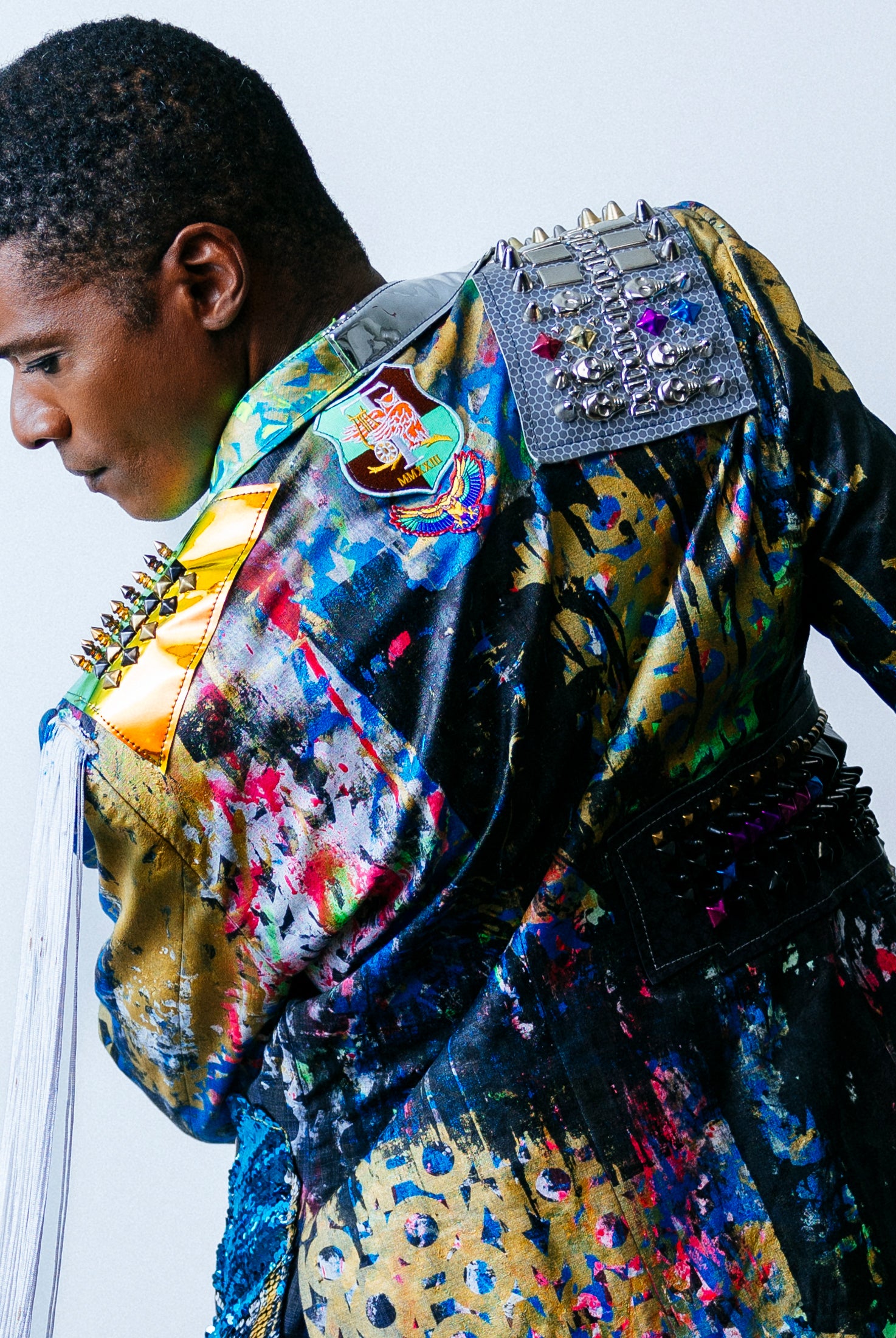 In the Tinsel Arcade, we blend street, formal, and post-modern elements to conjure one-of-a-kind garments by hand. Each is meticulously tailored to be equally dramatic and wearable. With your input, your bespoke garment will reflect you, push you, extend you, and complete you. If more is never enough, you can add LED and reflective overlays with stealth and nonstop modes.