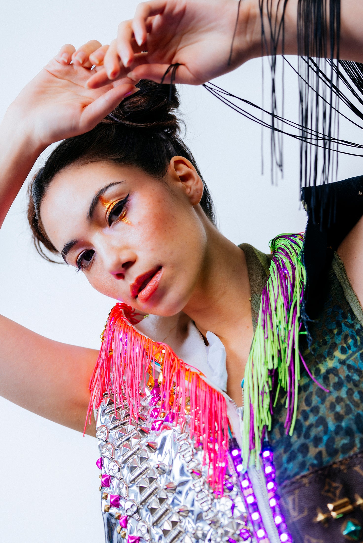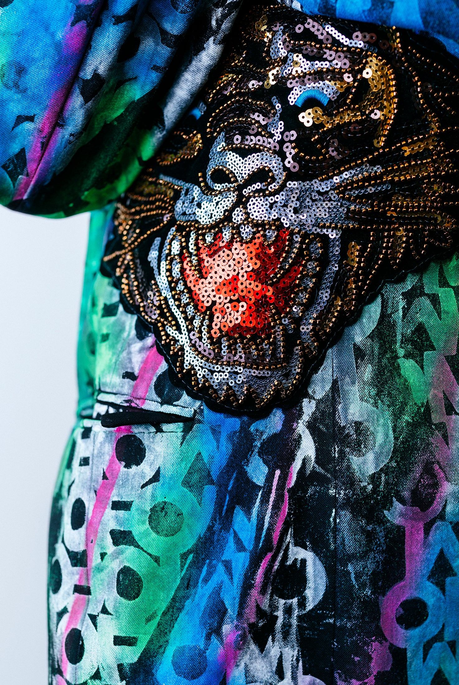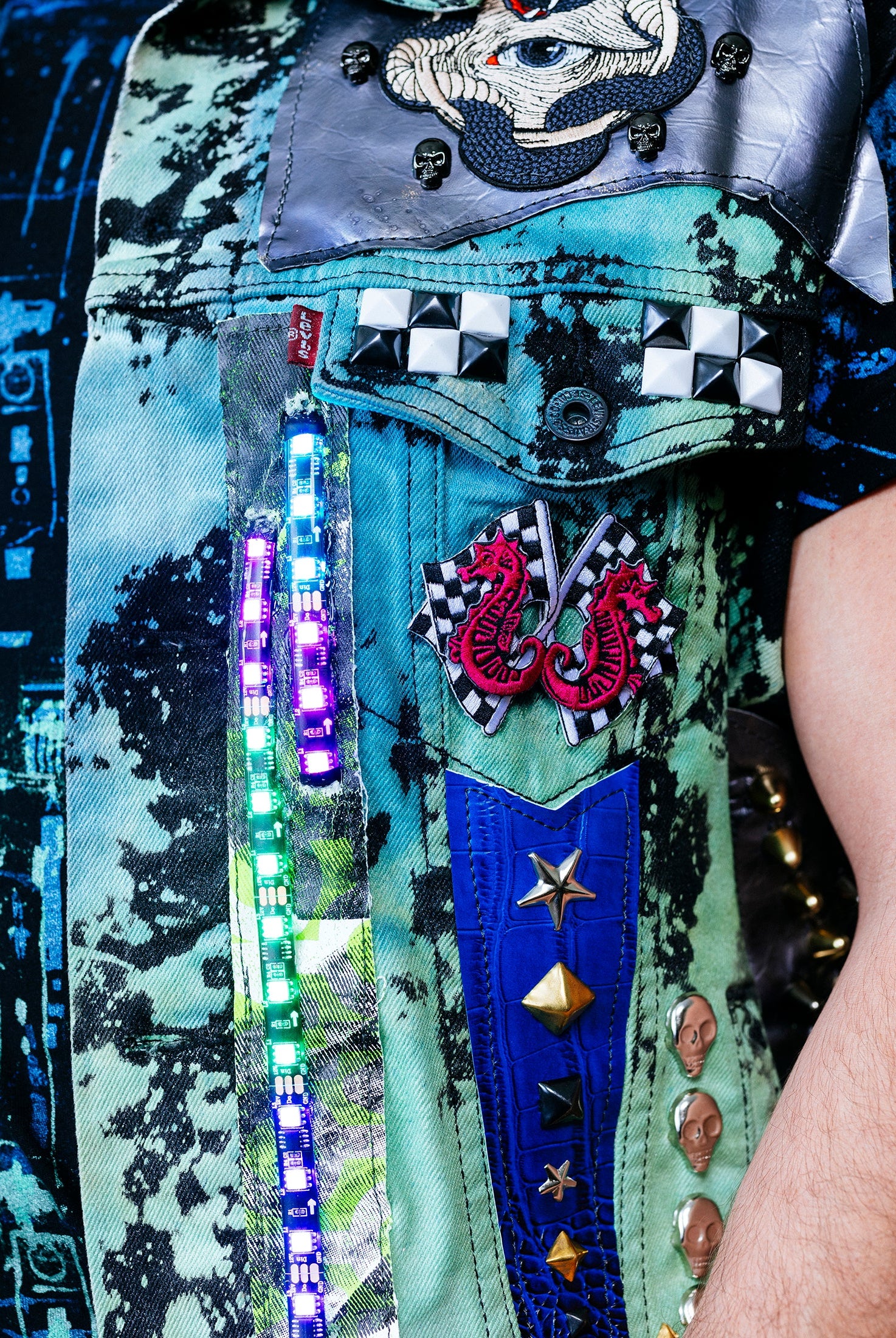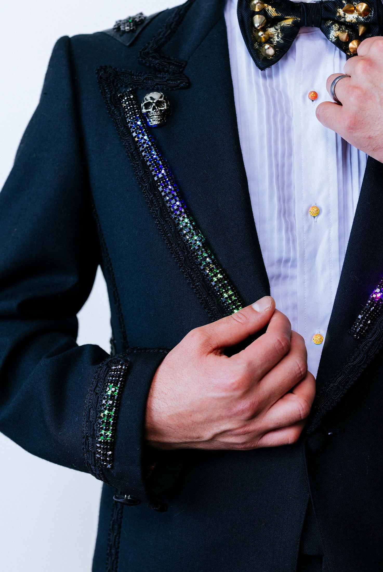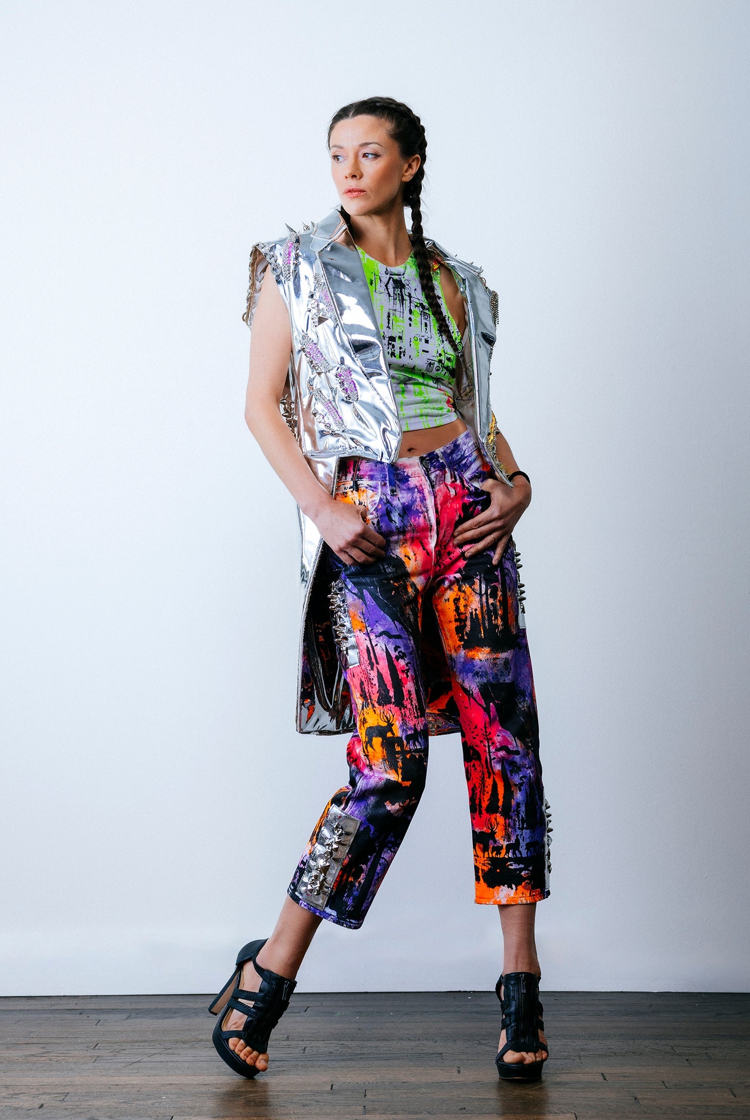 In the Tinsel Arcade, we blend street, formal, and post-modern elements to conjure one-of-a-kind garments by hand. Each is meticulously tailored to be equally dramatic and wearable. With your input, your bespoke garment will reflect you, push you, extend you, and complete you. If more is never enough, you can add LED and reflective overlays with stealth and nonstop modes.