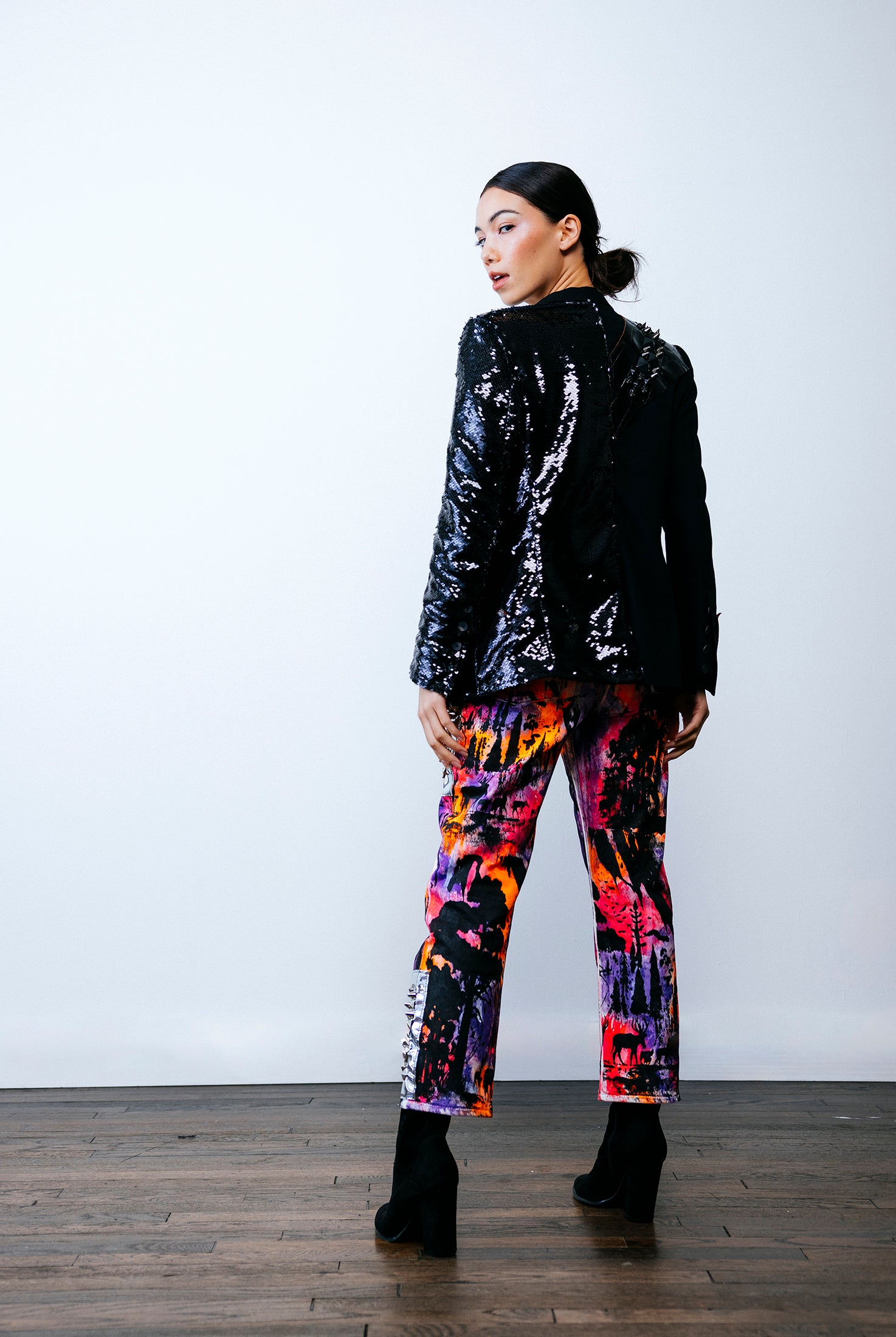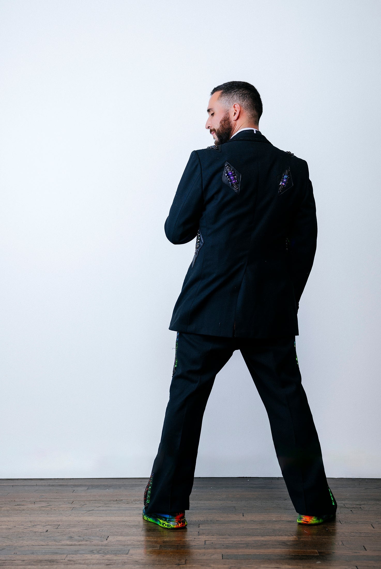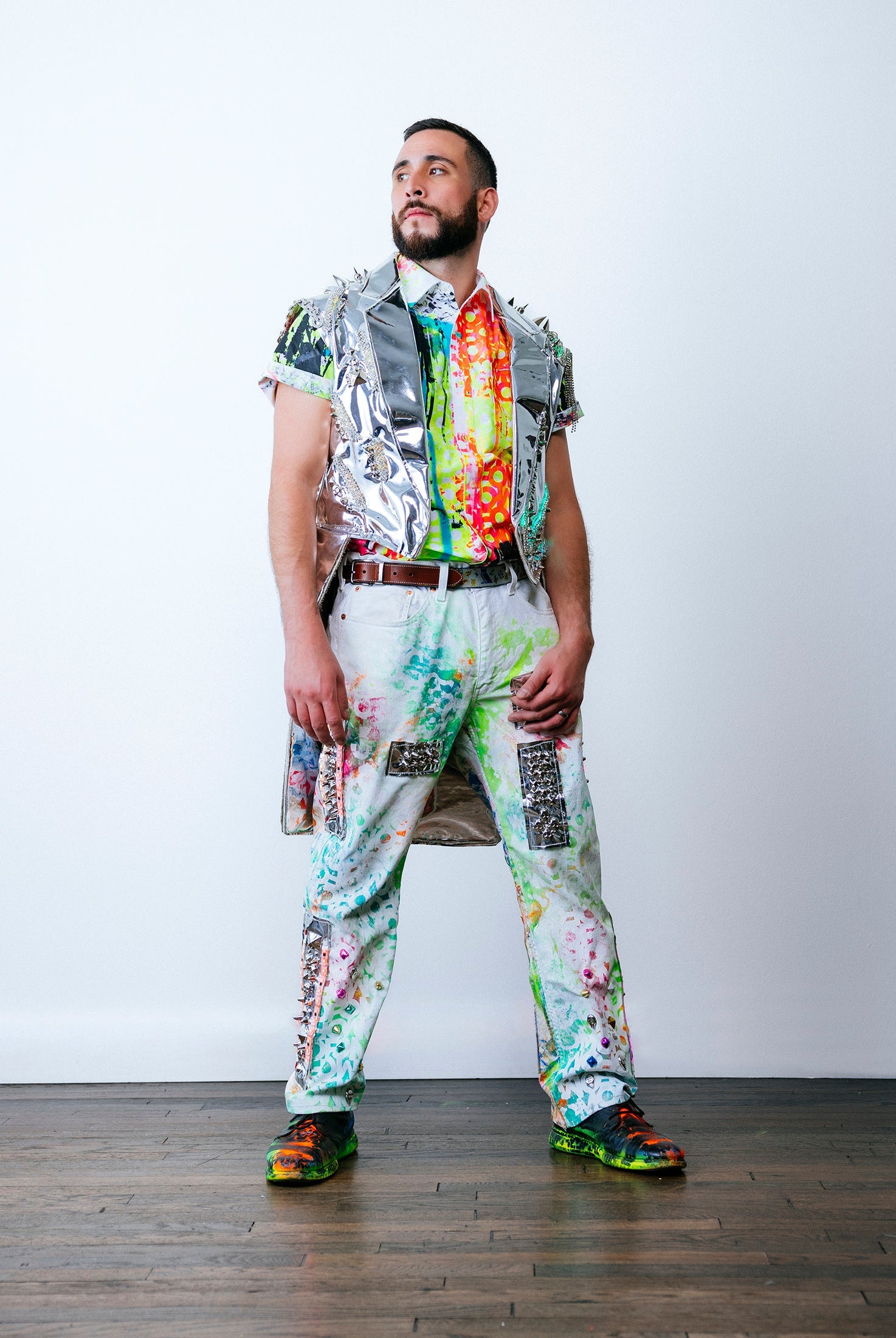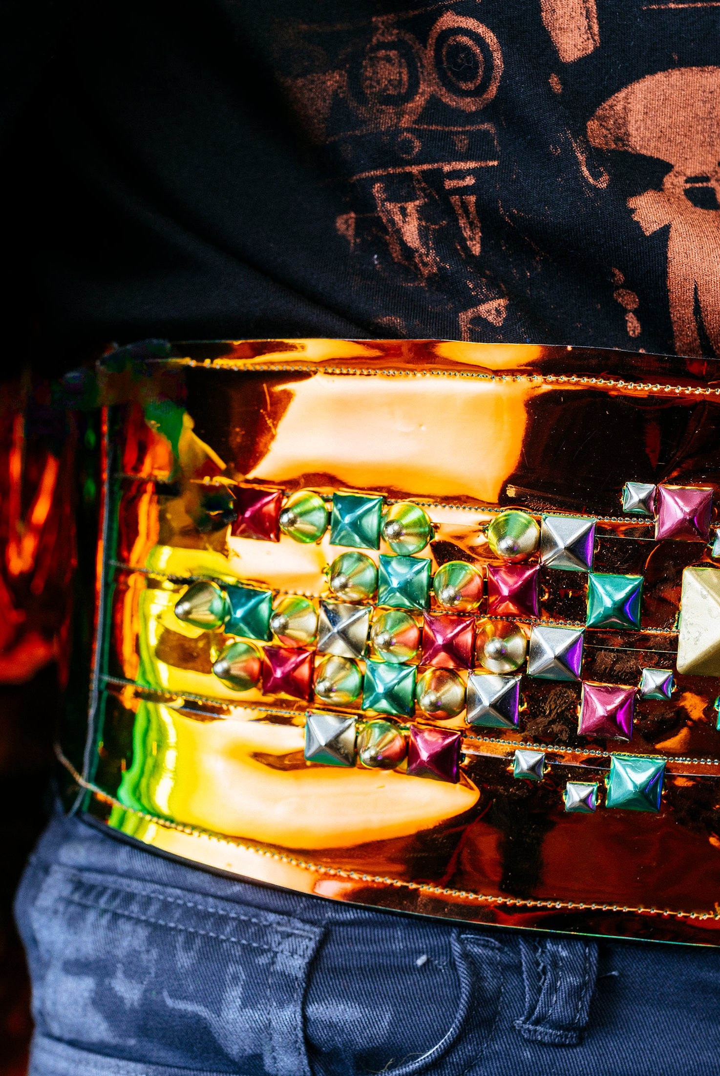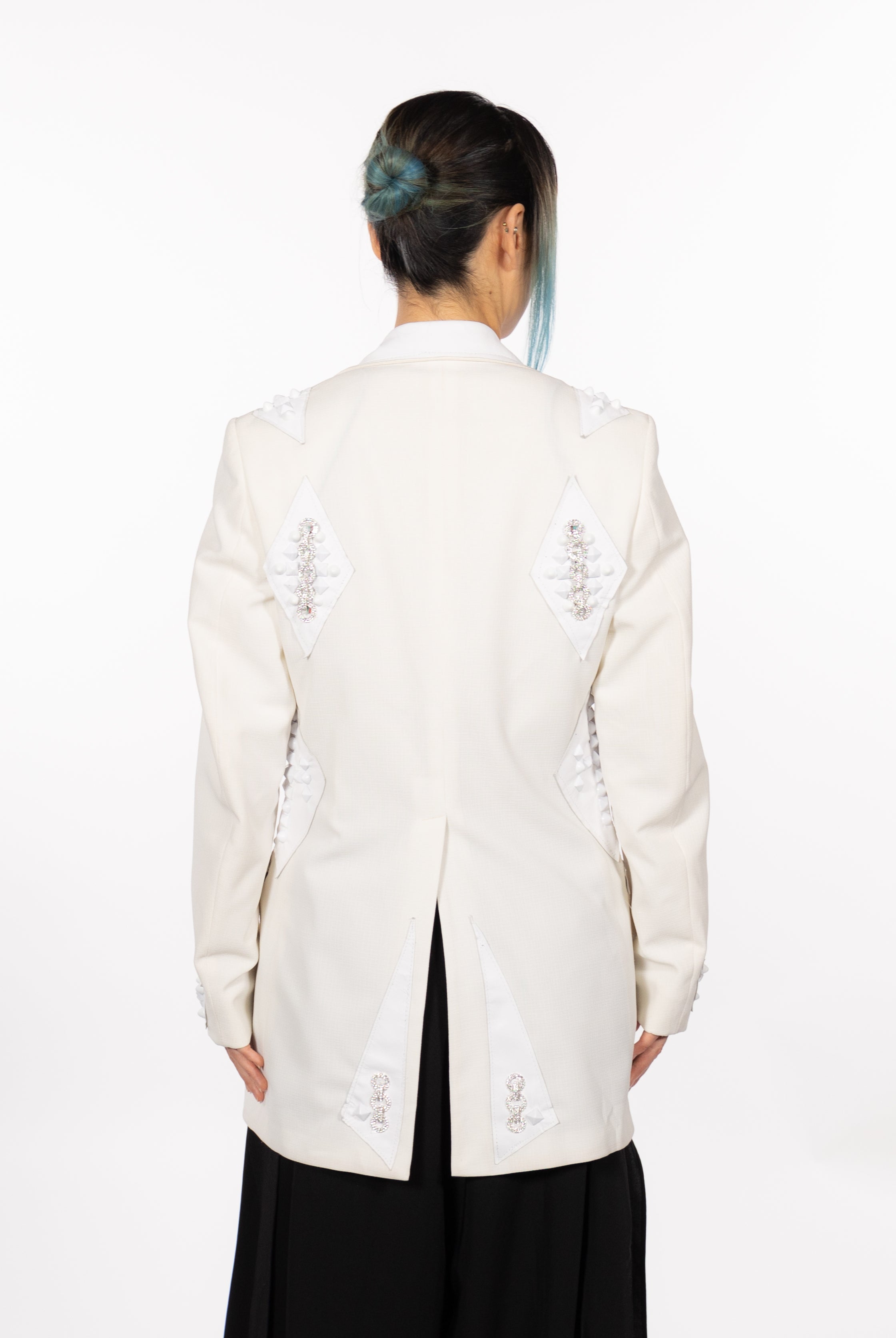 In the Tinsel Arcade, we blend street, formal, and post-modern elements to conjure one-of-a-kind garments by hand. Each is meticulously tailored to be equally dramatic and wearable. With your input, your bespoke garment will reflect you, push you, extend you, and complete you. If more is never enough, you can add LED and reflective overlays with stealth and nonstop modes.