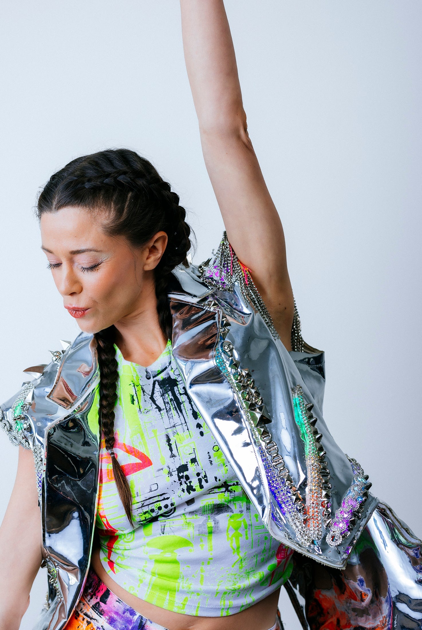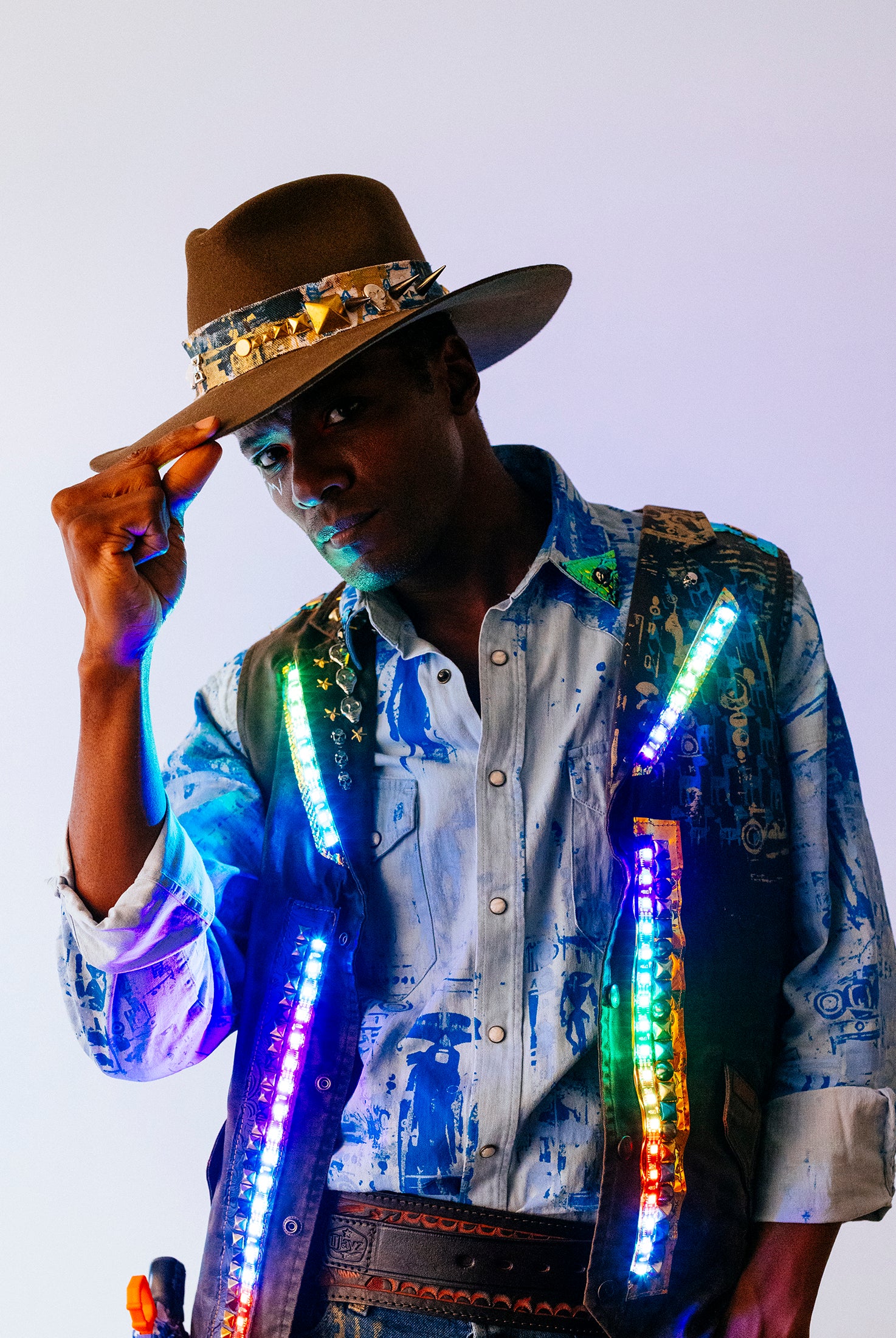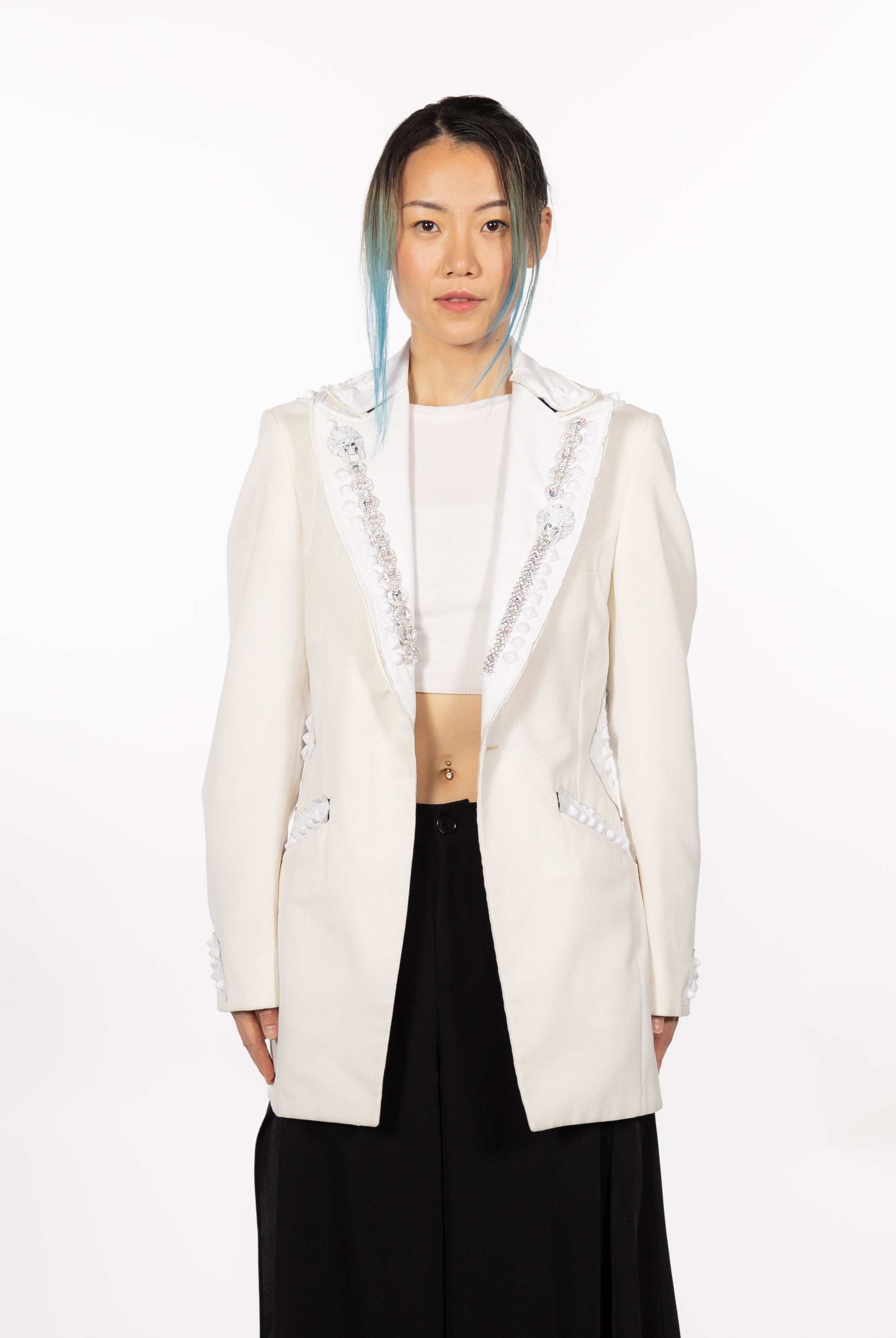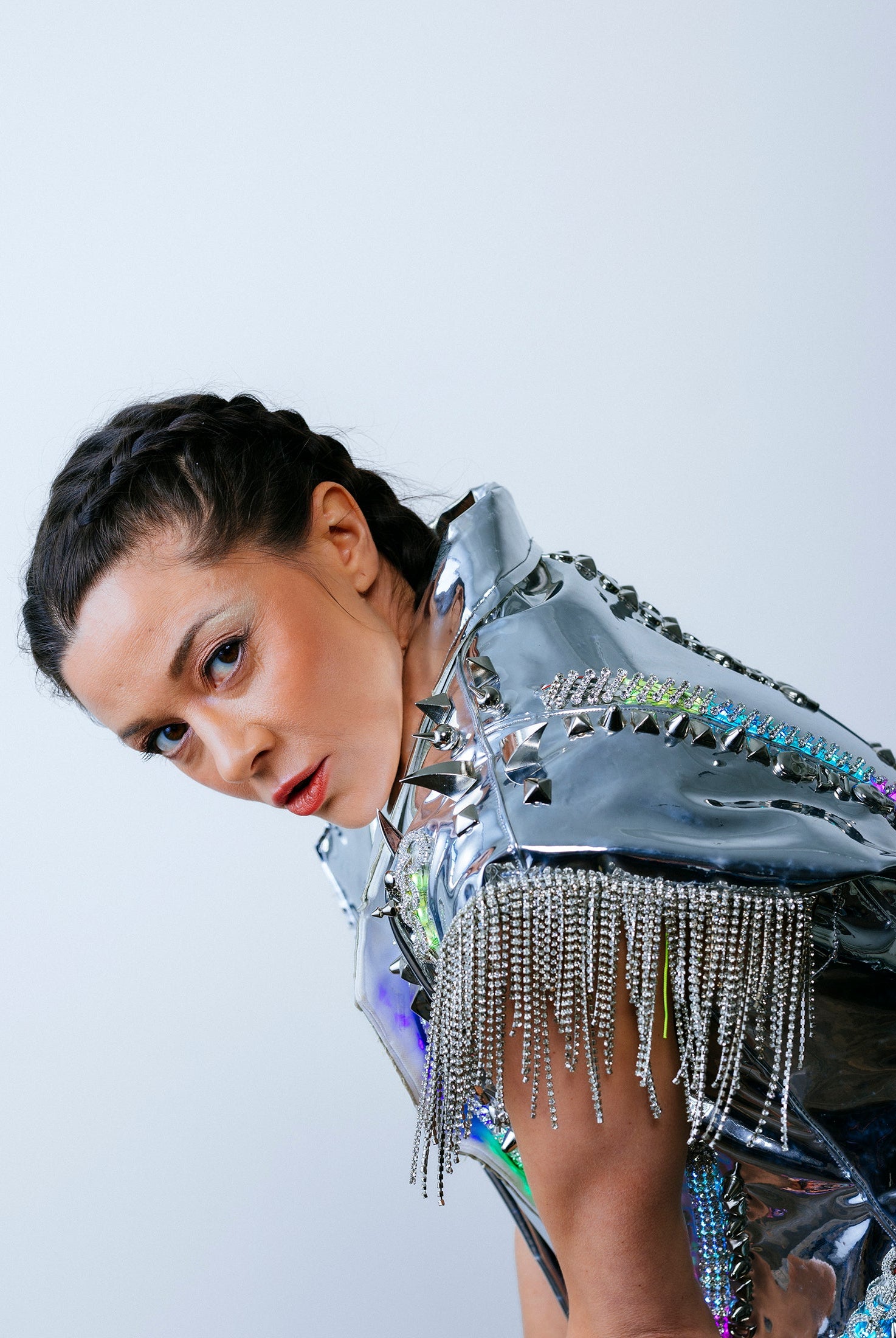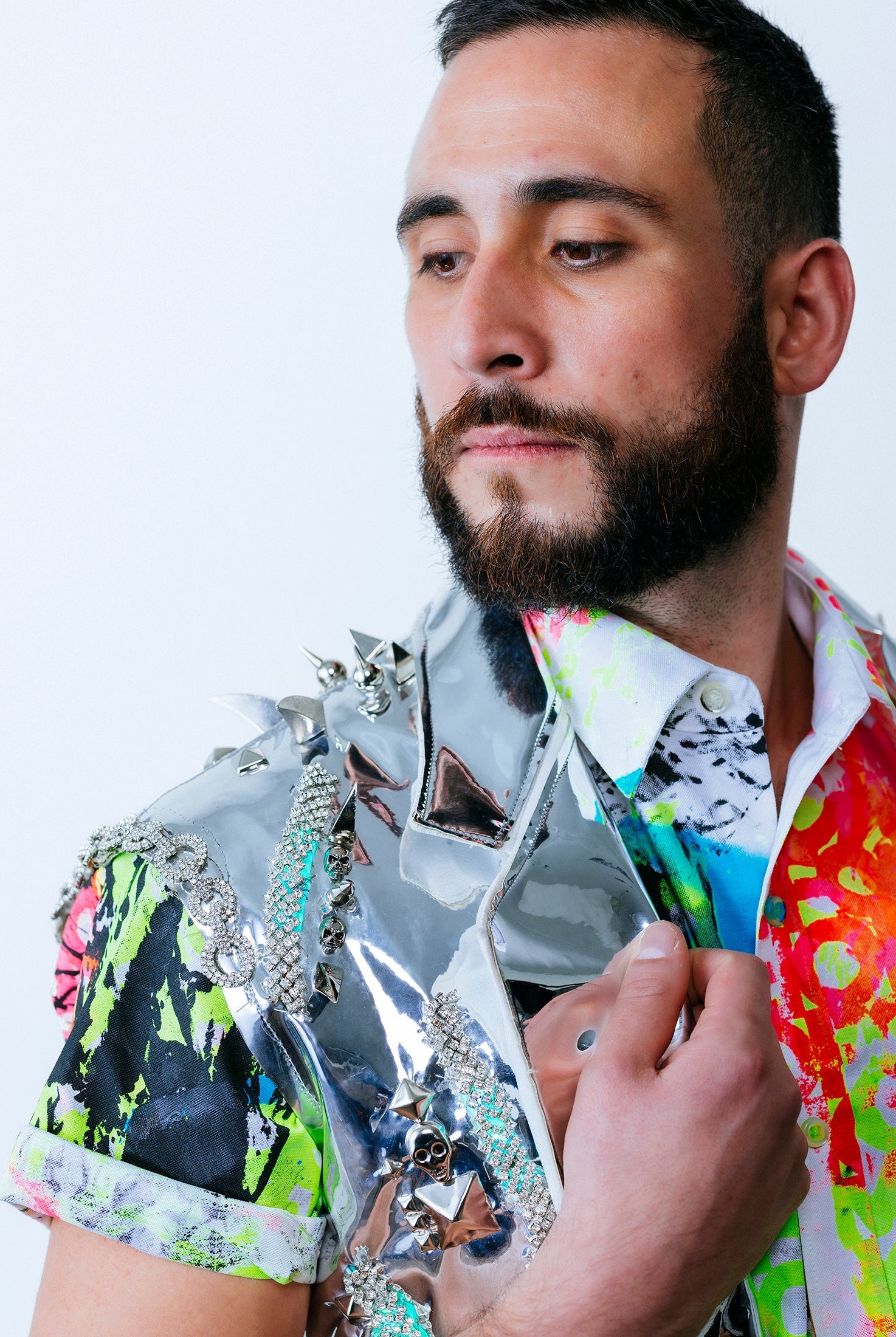 In the Tinsel Arcade, we blend street, formal, and post-modern elements to conjure one-of-a-kind garments by hand. Each is meticulously tailored to be equally dramatic and wearable. With your input, your bespoke garment will reflect you, push you, extend you, and complete you. If more is never enough, you can add LED and reflective overlays with stealth and nonstop modes.