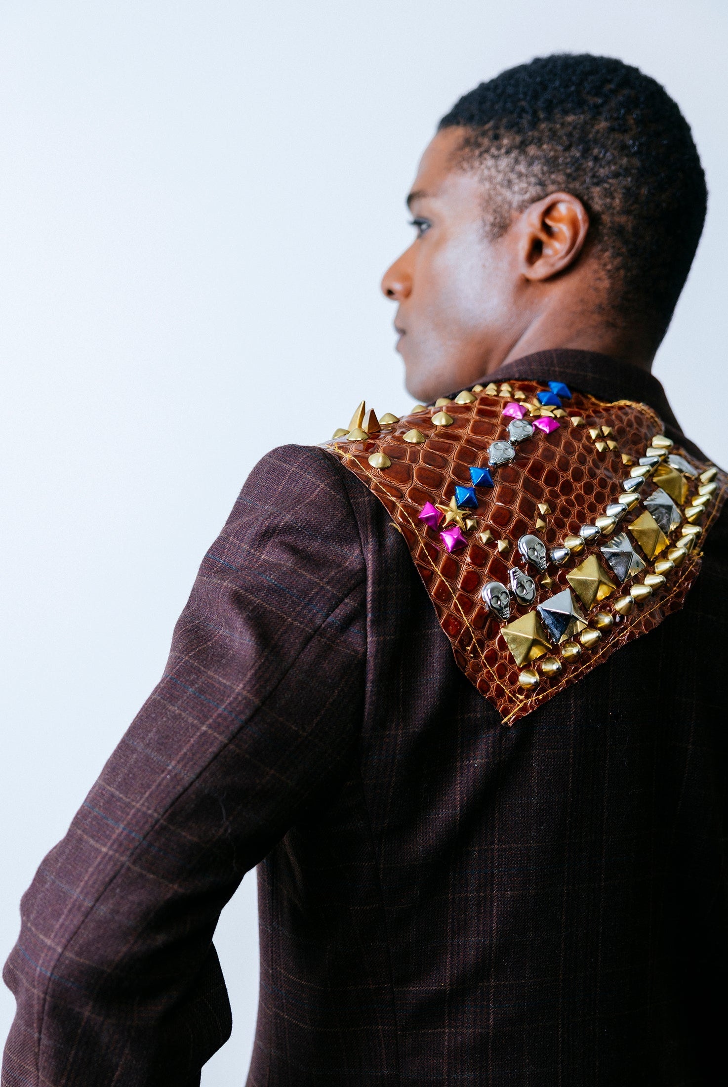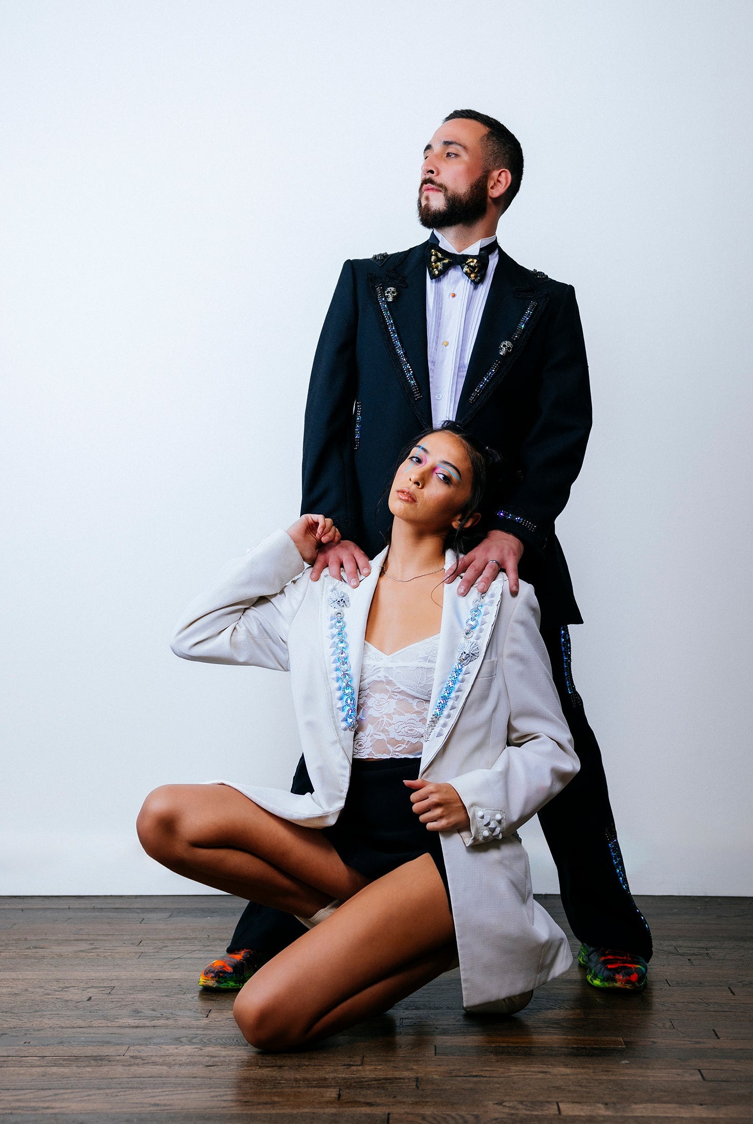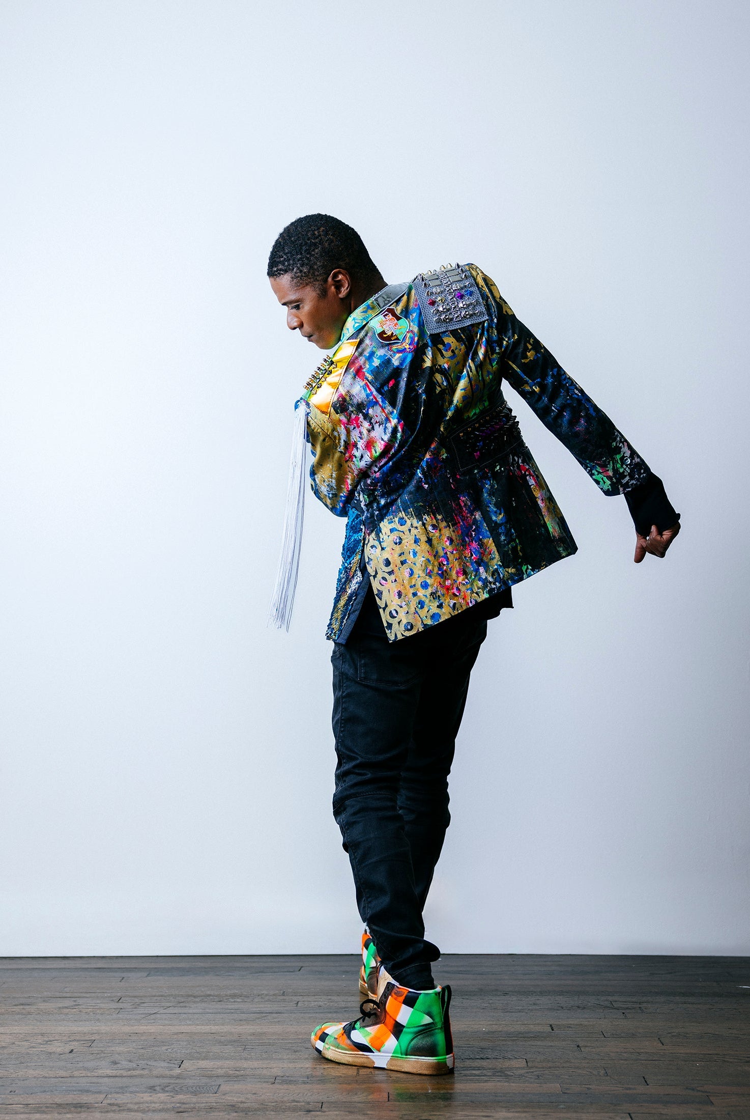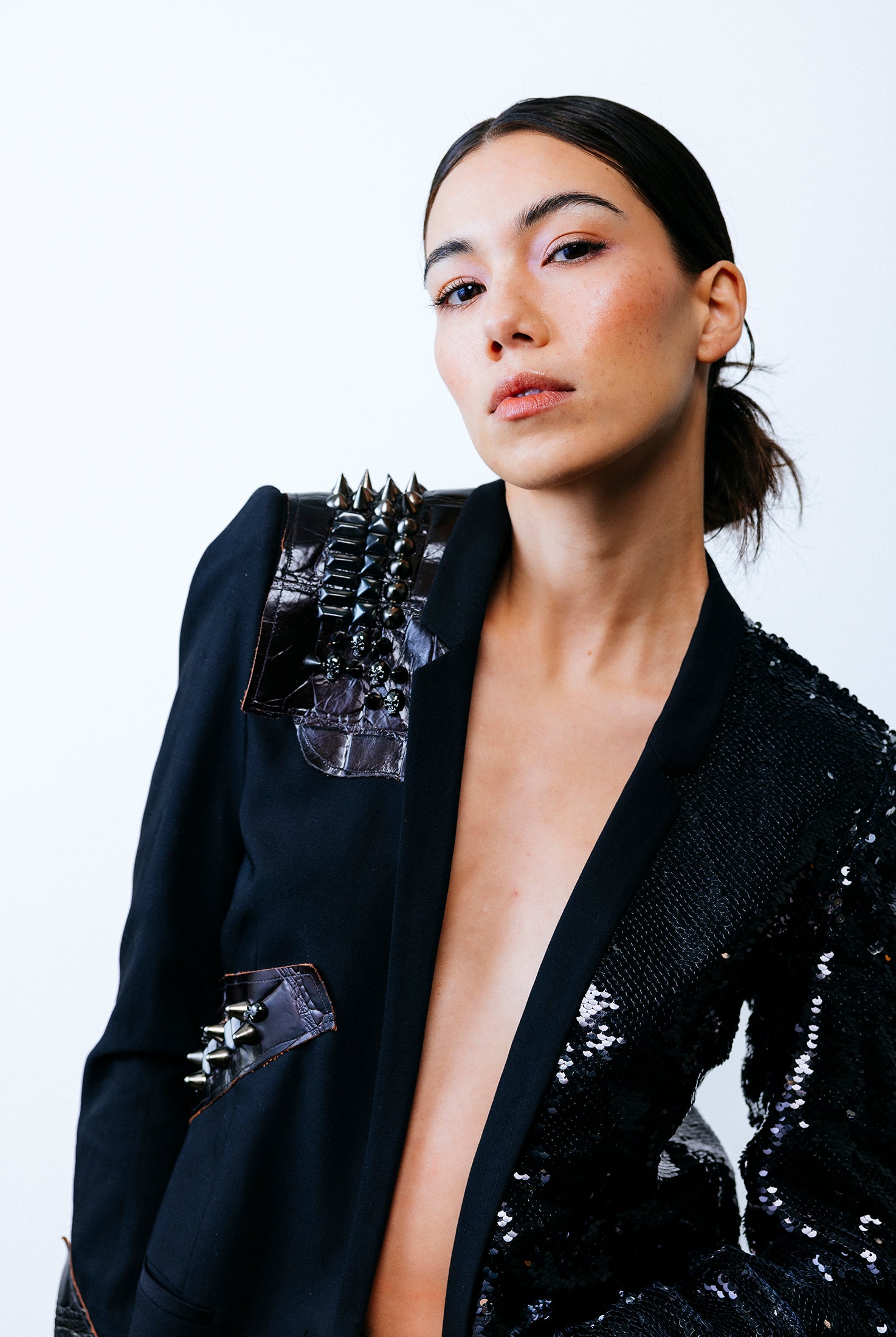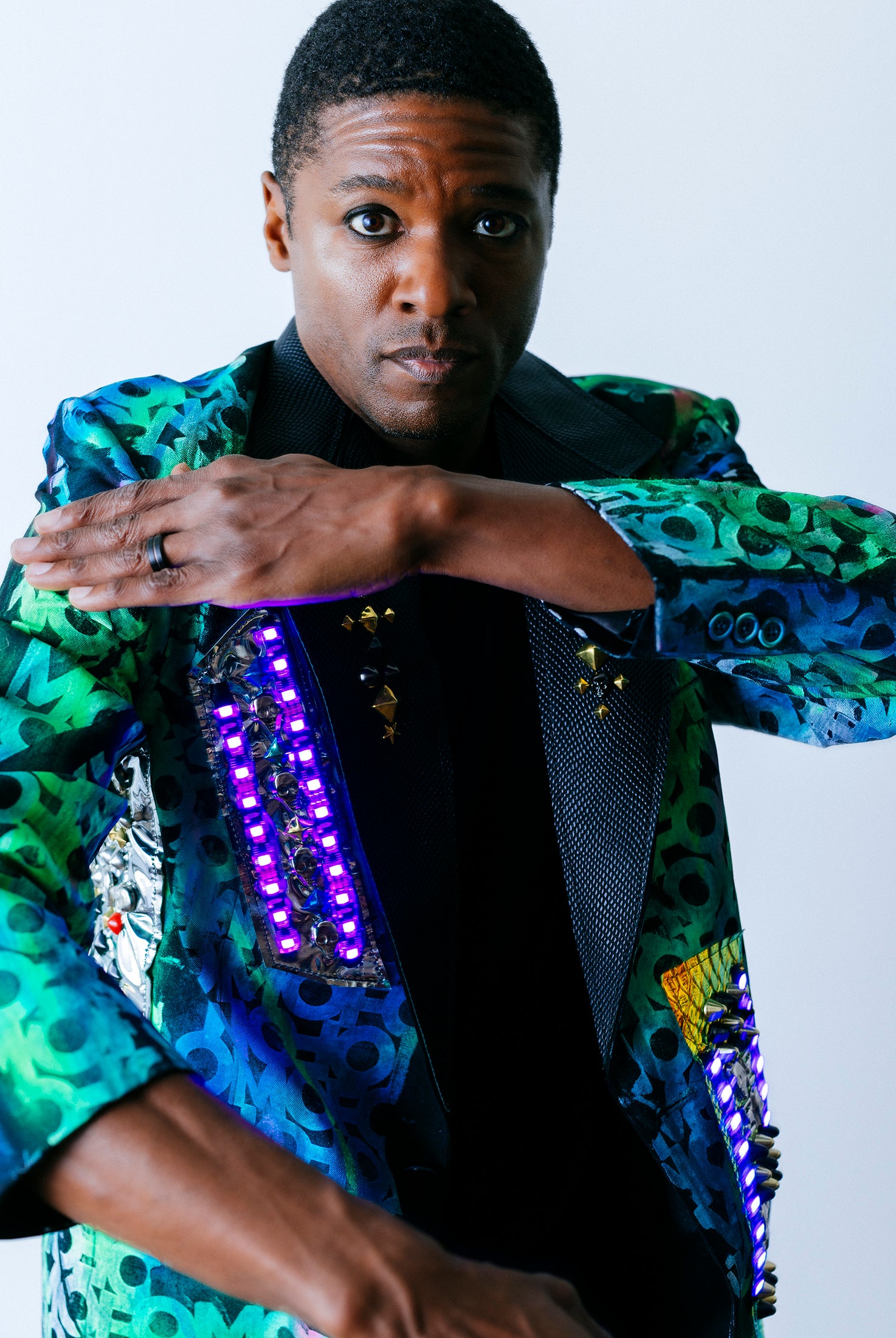 In the Tinsel Arcade, we blend street, formal, and post-modern elements to conjure one-of-a-kind garments by hand. Each is meticulously tailored to be equally dramatic and wearable. With your input, your bespoke garment will reflect you, push you, extend you, and complete you. If more is never enough, you can add LED and reflective overlays with stealth and nonstop modes.