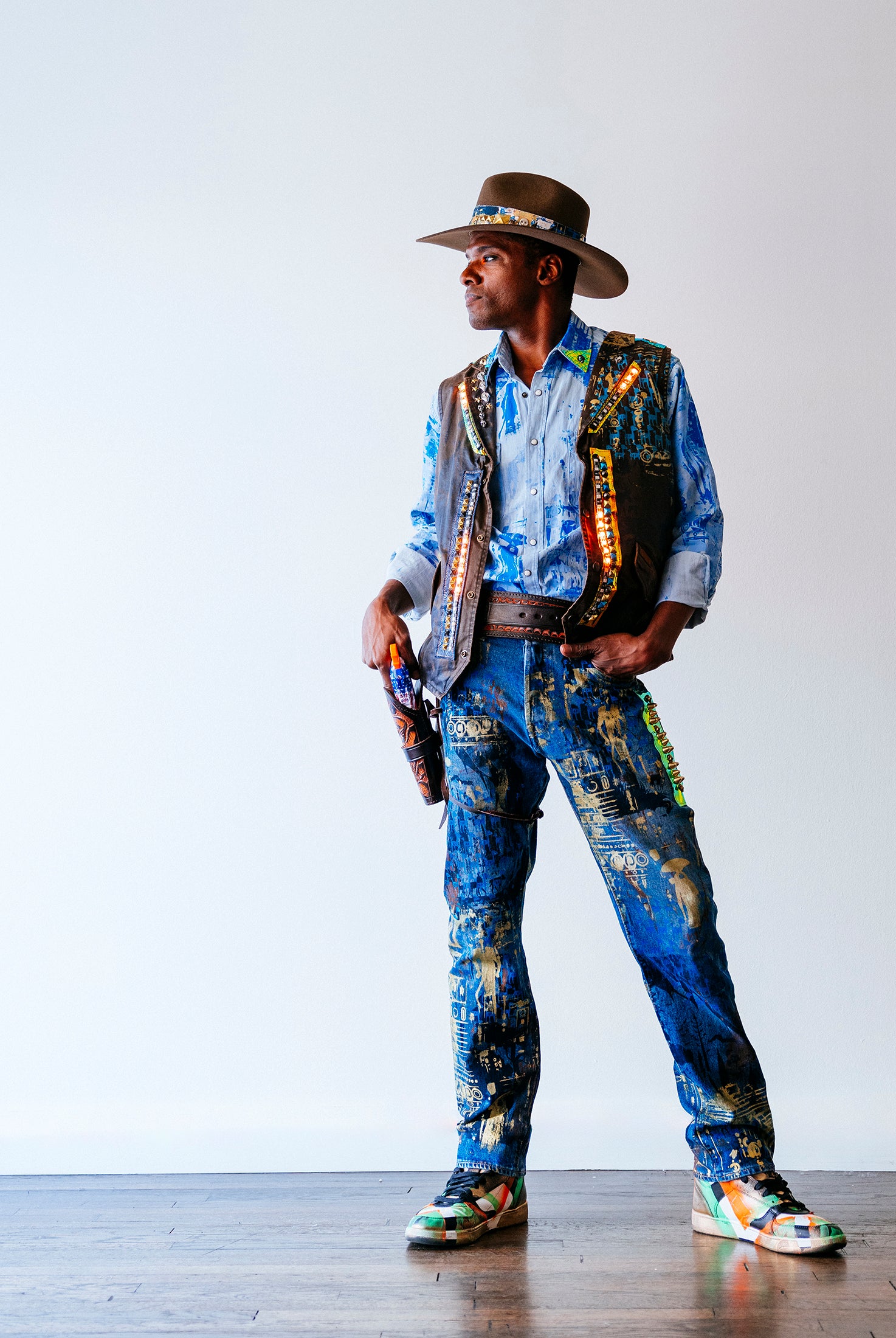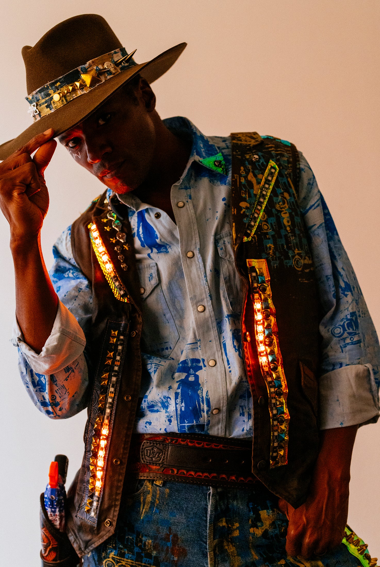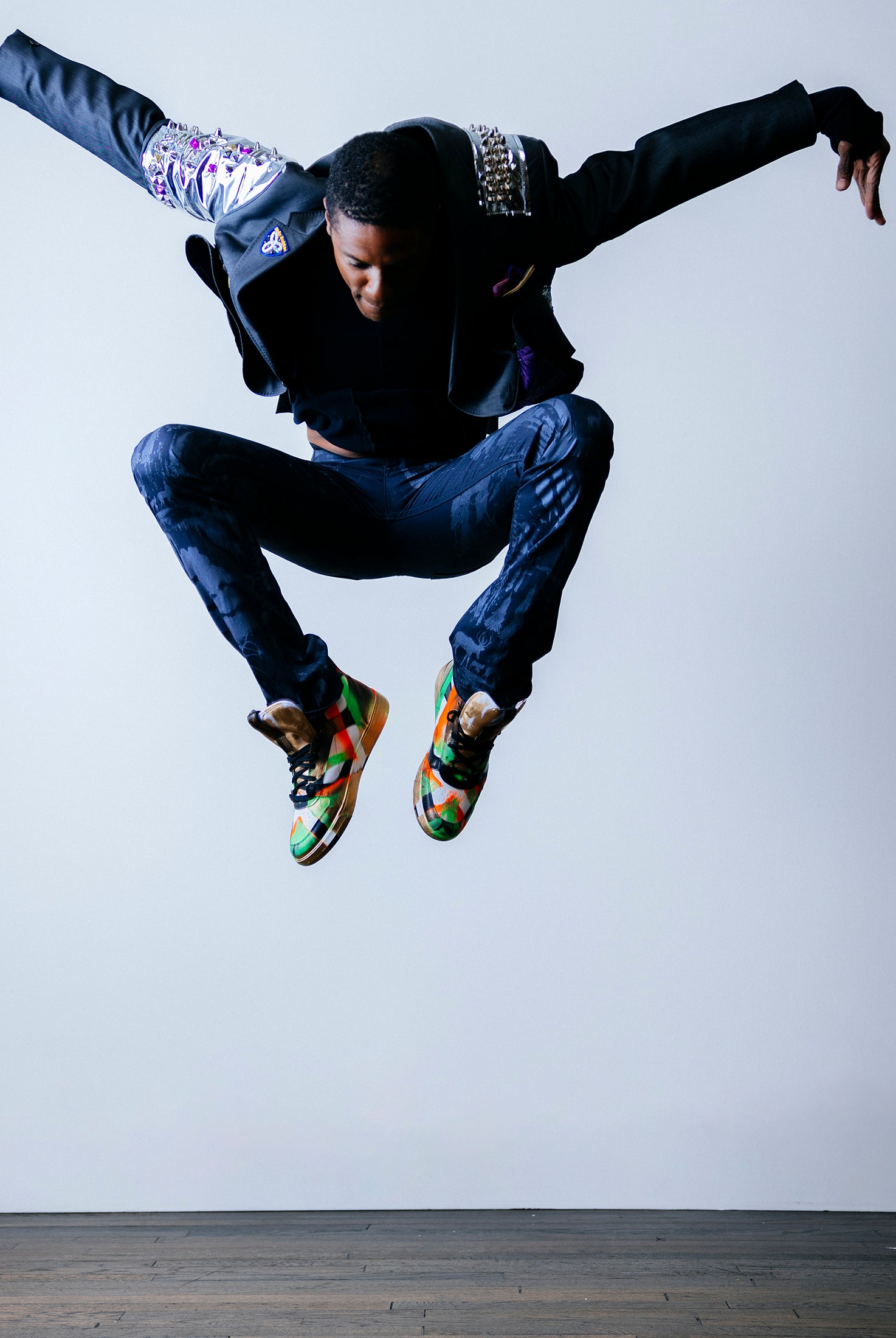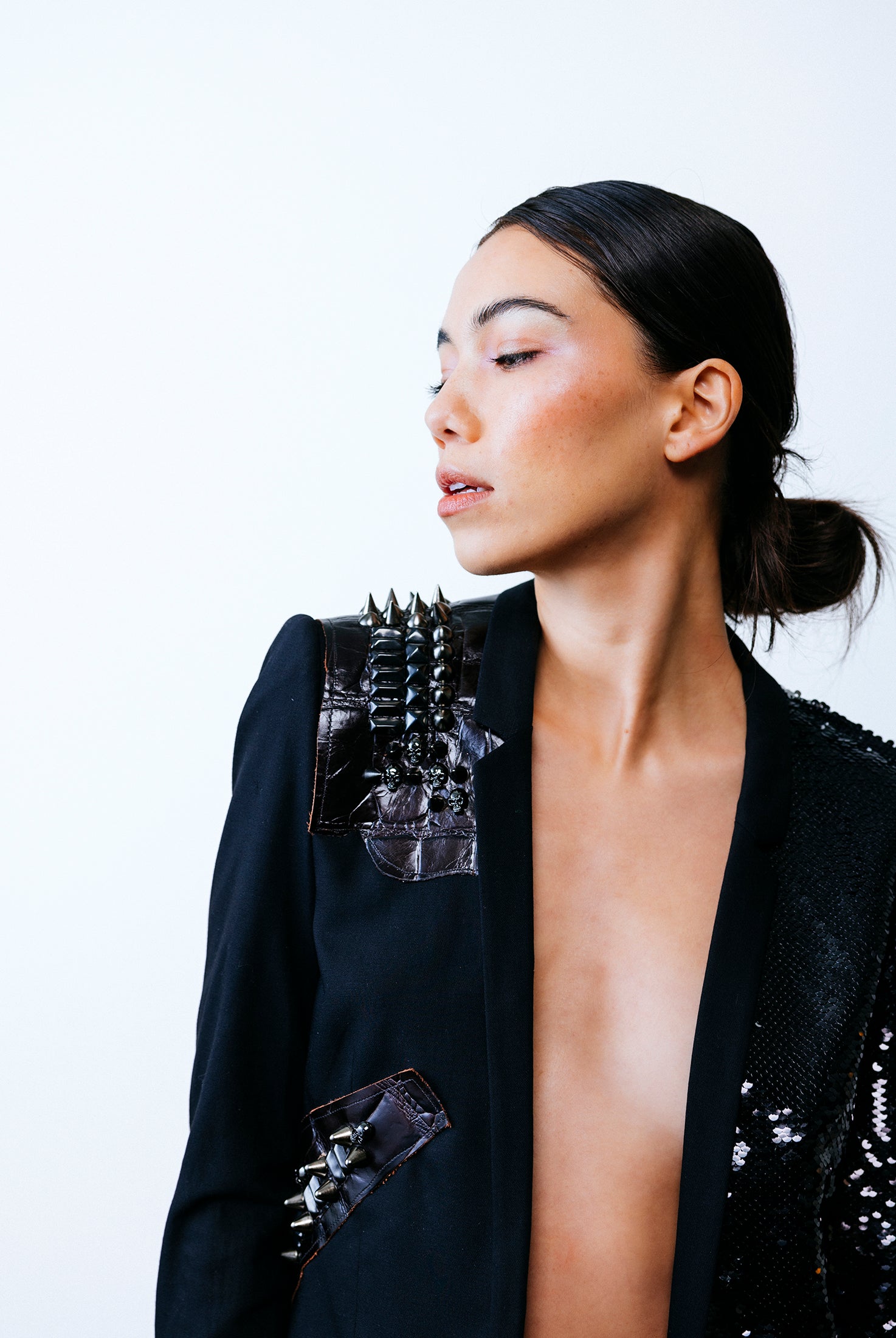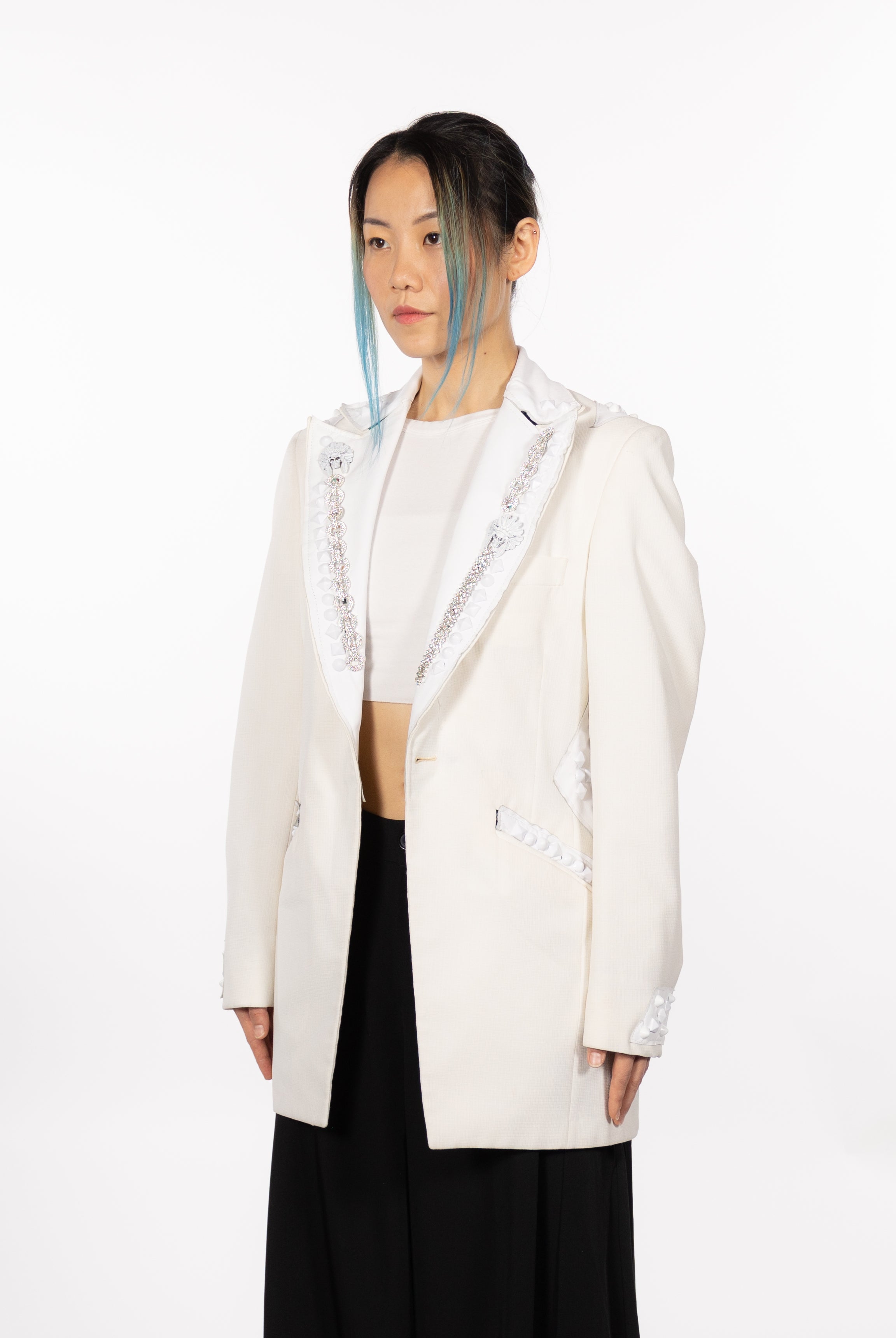 In the Tinsel Arcade, we blend street, formal, and post-modern elements to conjure one-of-a-kind garments by hand. Each is meticulously tailored to be equally dramatic and wearable. With your input, your bespoke garment will reflect you, push you, extend you, and complete you. If more is never enough, you can add LED and reflective overlays with stealth and nonstop modes.