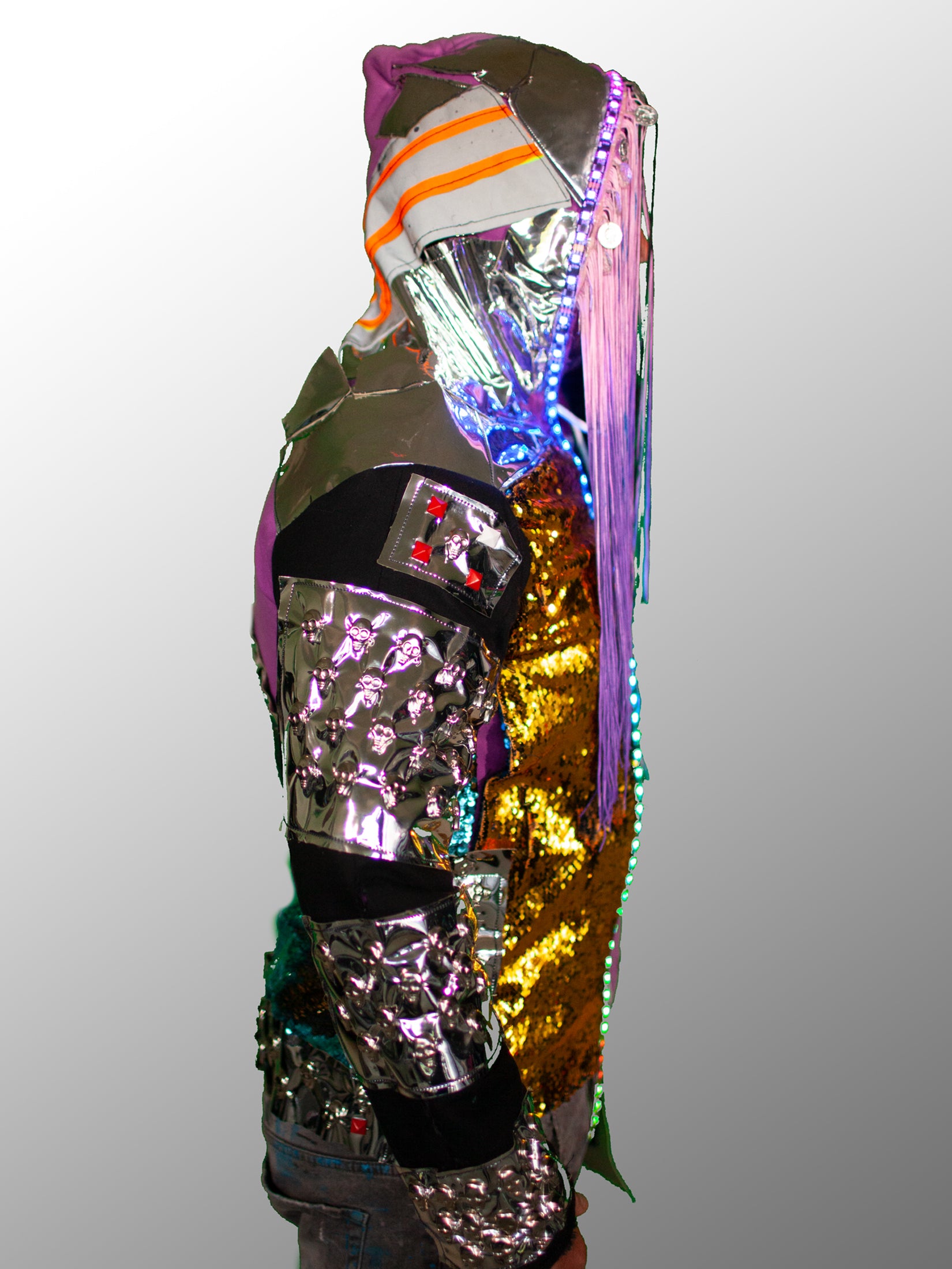 At Tinsel Arcade, we engage in a collaborative journey with our clients, starting with a deep exploration of their vision and garment preferences. From defining the garment's essence to incorporating unique ideas, our process involves crafting custom screen art, designing bespoke stud schemes, integrating LED components, and creating personalized printed textiles, all while offering clients the option to actively participate in the creative process. Our garments will ensure you stand out boldly wherever you choose to make an impact.