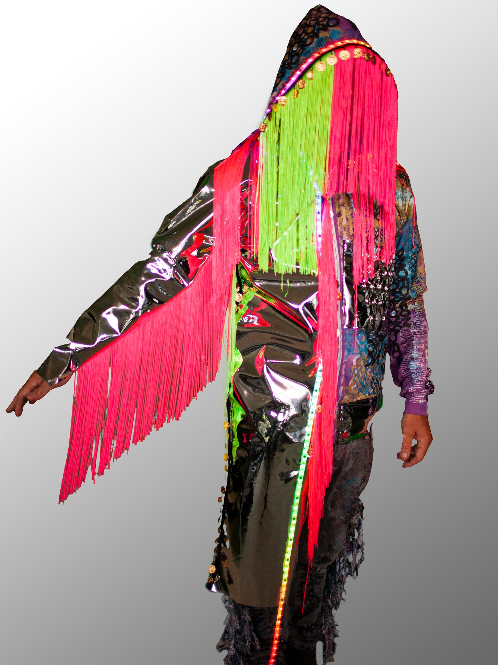 At Tinsel Arcade, we engage in a collaborative journey with our clients, starting with a deep exploration of their vision and garment preferences. From defining the garment's essence to incorporating unique ideas, our process involves crafting custom screen art, designing bespoke stud schemes, integrating LED components, and creating personalized printed textiles, all while offering clients the option to actively participate in the creative process. Our garments will ensure you stand out boldly wherever you choose to make an impact.